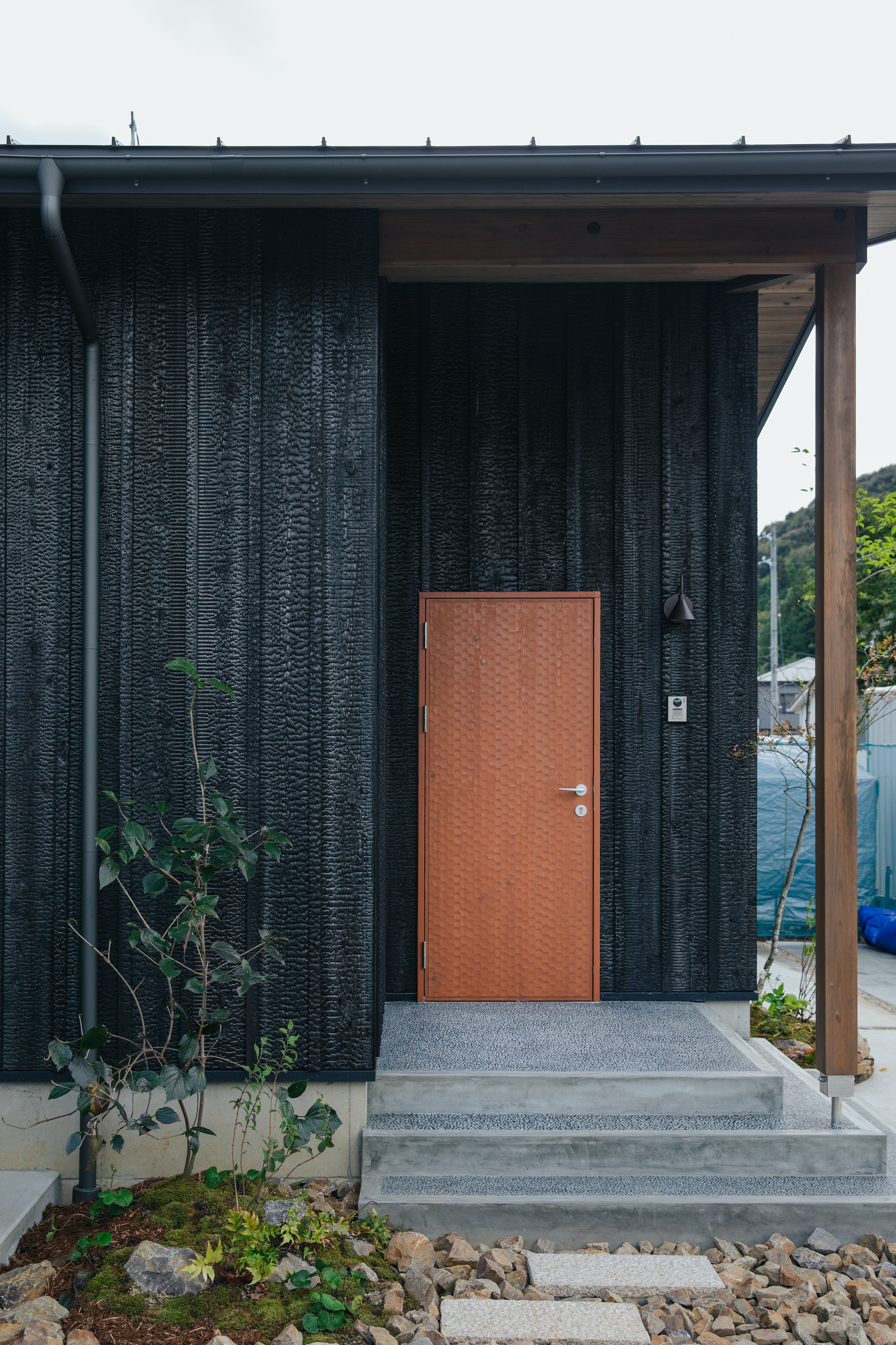 焼杉を使ったファサードが印象的な